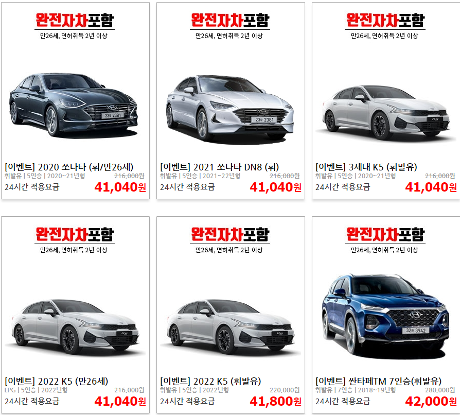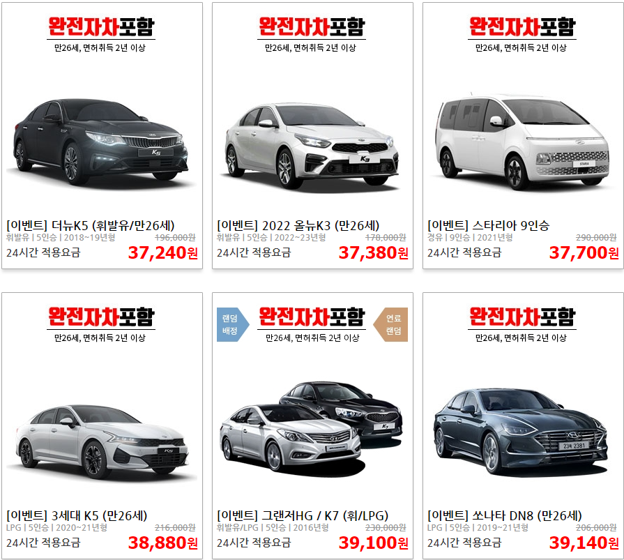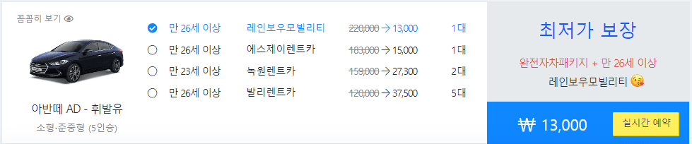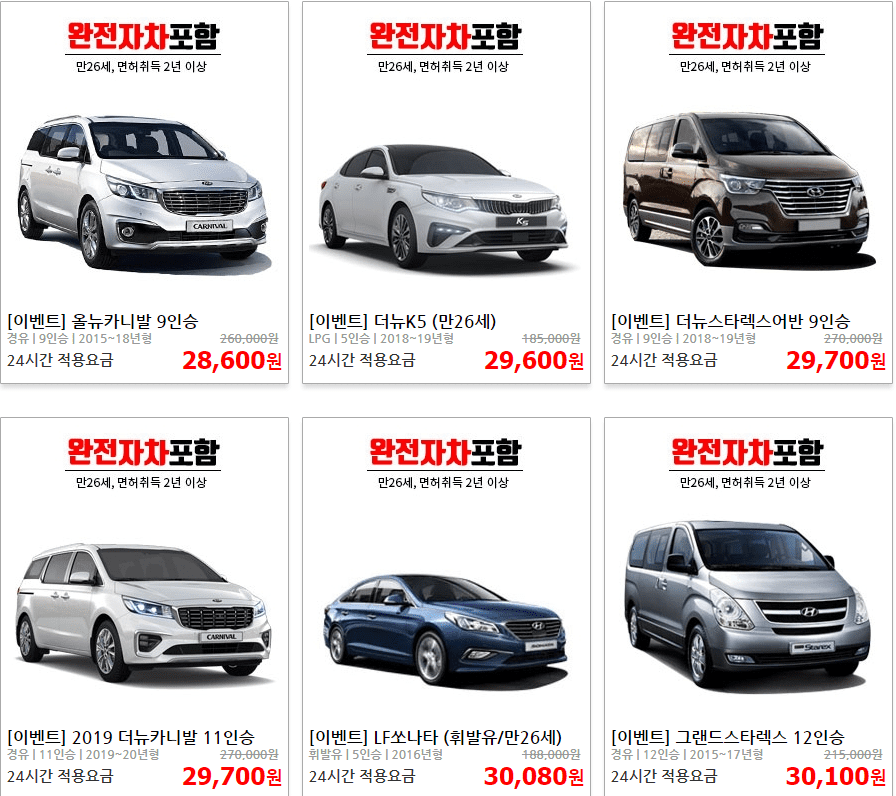 - 다양한 차량 보유, 특히 패밀리카 옵션이 많음