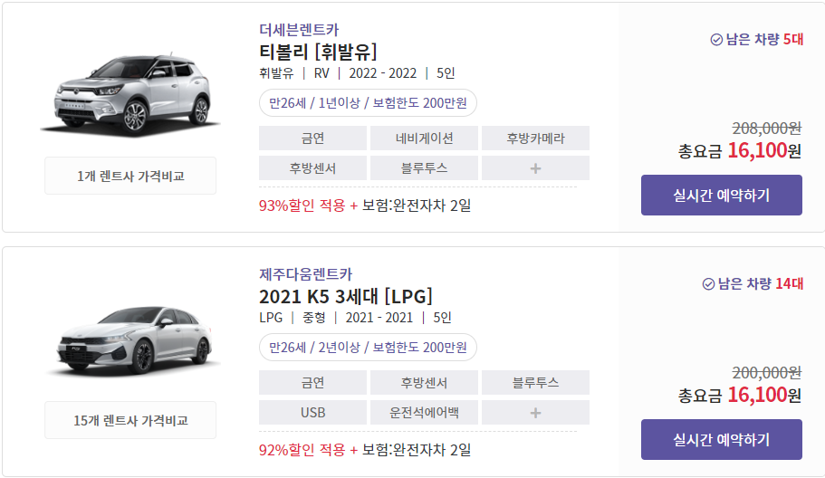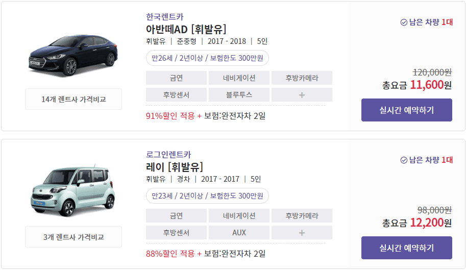 이 외에도 차종에 따라 다양한 옵션이 제공되며, 장기 대여 시 추가 할인을 받을 수 있습니다.